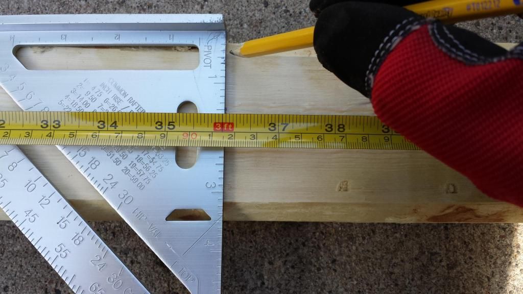 Then measure and cut 2 different boards into 16" sections, you should be able to get 4 sections from a 6' board with a little to spare.